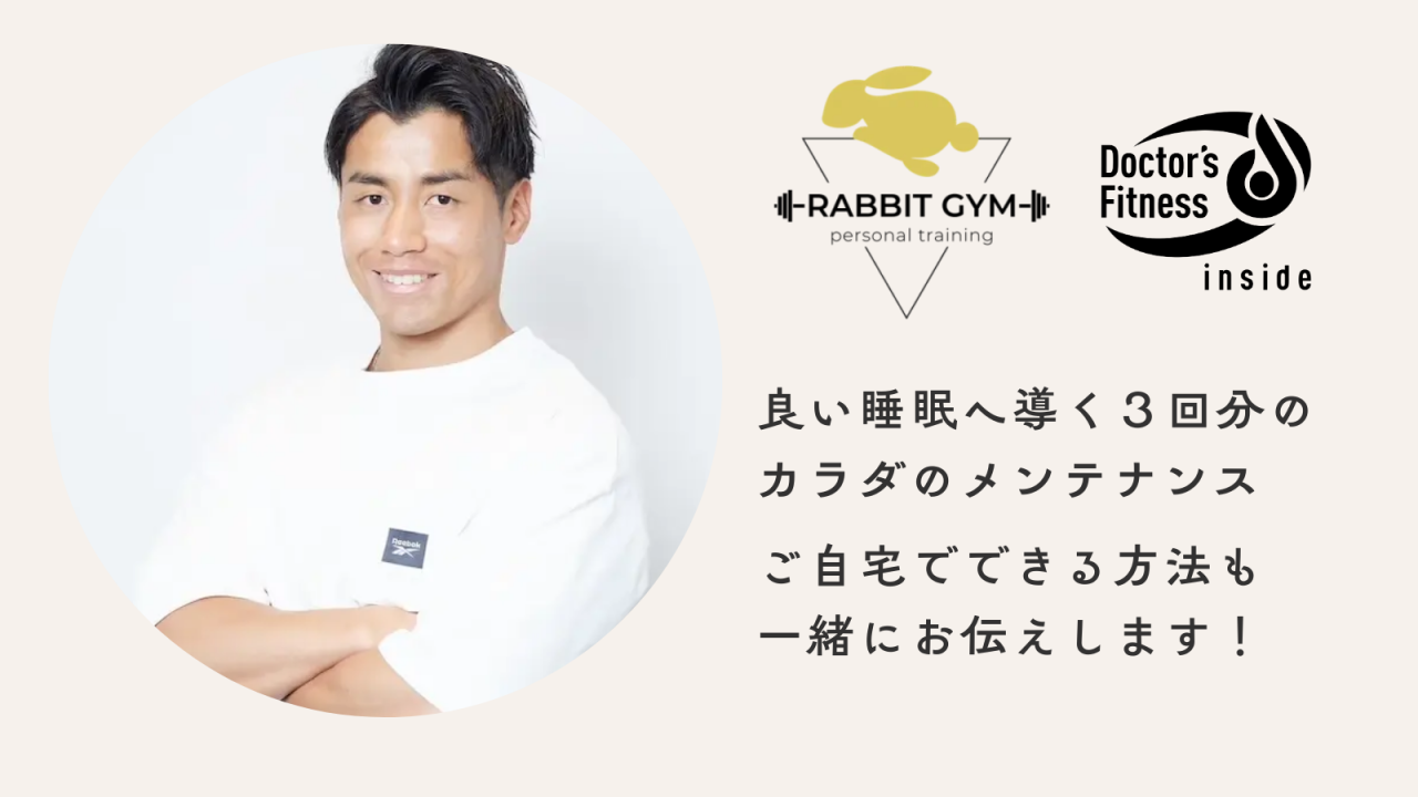 睡眠をより快眠に導くための「トレーニング&ストレッチ」を3日間、Doctor's Fitness 診療所から徒歩1分の提携フィットネスジム「Rabbit GYM」にてご提供します!!